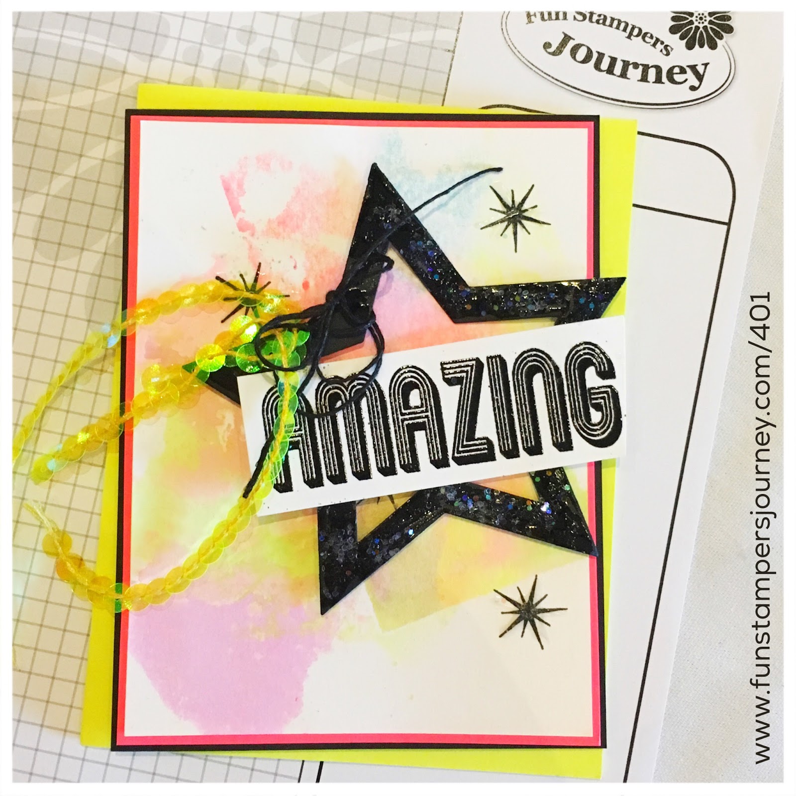The second one involved a little smooshing! I love this fun technique and use it a lot at home. I added some more glitter to the star and stamped stars...and placed the panel wonky on the card base! This was my favorite card. I didn't trim the sentiment panel and set it off wonky style again. I'm a wonky kinda gal, I guess! LOL